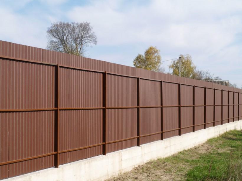 Цена забора из профнастила с фундаментом зависит от длины, высоты, типа ленточного фундамента, толщины и цвета профлиста.
